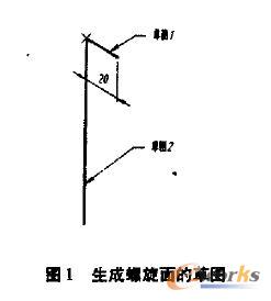 在前视基准面中分别建立草图1和草图2,如图1所示。草图1中的直线一个端点在坐标原点,设里水平约束,其长度为弹簧中径的二分之一,可以用尺寸标注约束其长度。草图2中的直线的一个端点在坐标原点,设置竖直约束,其长度为弹簧自由状态下有效长度值,但不要标注尺寸。建立扫描曲面特征,以草图1为轮廓,草图2为路径,在选项的方向扭转类型中选择沿路径扭转.度数为弹簧有效圈数乘以360°.如图2所示。