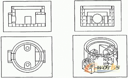 基本视圈创建好之后,根据需要重新设置剖面线、绘制中心线、标注尺寸、关闭VPORTS图层以关闭视图外框、插入图框、插入标题栏等,正交视图创建完毕。