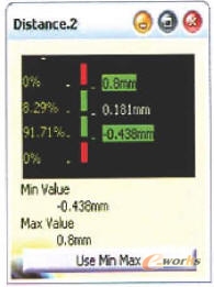 曲面误差分析的目的是检验曲面的精度,它是伴随着在曲面的创建过程中完成的气在曲面拟合、拼接完成后,利用距离分析功能(Distance Analysis)检测生成的曲面与原始的点云数据之间的偏差。例如,将图8 中的曲面与点云数据进行误差分析,可以得到如图10所示的误差分析III ,从图中可见,显示误差在±0.8mm之内,其中91.71 %曲面的误差控制在±0.5mm内。由于车门属车身外表面,外表面强调质量,在保证车门表面光顺的前提下,精度可稍放宽,因此该曲面的精度是比较满意的。