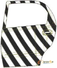 曲面的质量分析是对曲面进行光I原性和连续性检查,在构造曲面时,要随时检查所构建曲面的状况,注意检由面是否发生扭曲、曲率变化情况以及曲面间的几何连续情况等,以便及时修改。图11所示为车门曲面的斑马线分析结果。