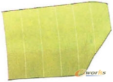 自由线生成曲面的方法,是用截面法(Planar Sections) 或通过点云特征提取特征线(Curve Creation 或Create Free Edges) 的方法,经过扫掠(Sweep) 、多截面由面( Multisection Surface) 、填充( Fill )或混成(Blend) 等功能来创建光顺由面片。这种方法的关键是要有质量好的架构线和合理的曲面片生成规划。有高质量的架构线作面,曲面的精度和光顺性才能很好的保证。而只有高质量的构架线,也还是无法生成曲面或理想曲面的可设计人员在构面前一定要规划合理的曲面片生成顺序和生成方法。构建曲线的类型有直线、圆弧和样条线等多种,一般情况下采用样条线(Spline) 即可顺利完成构建。DSE模块中的3D Curve或GSD模块的Spline功能均可生成样条线,其强大的编辑功能还包含移除、增加控制点和约束控制点等,以保证曲线切矢连续或曲率连续,设计师可根据需要对已生成的样条线进行调整。此外,在GSD模块中,设计人员还经常需要对曲线进行断开(Split)、桥接(Curve Connect) 和光顺(Curve Smooth) 处理,以获得构面所需的架构线。如图4所示的是对基本曲面B2截面后所得的其中5根截面线的断开处理情况。这里的曲面规划思想是:基本曲面B2作为一整张曲率变化外凸的曲面,被凹槽B3所裁,两曲面之间由过渡面来连接。因此为构造曲面B2,需对生成的截面线在凹槽地方进行断开、连接和光顺处理,使其所有截面线的曲率变化一致。另外,对于处理好的曲线应用多截面曲面功能构面,创建曲面如图5所示。