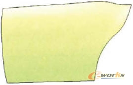 图5中创建的曲面并没有完整表达出点云形状,还必须对其进行延伸、裁剪等操作,以使其完全符合点云的形状。一般的做法是对曲面进行延伸,然后将原始边界线投影,利用投影曲线裁剪掉多余的部分。CATIA的外插延伸(Extrapolate)功能包含线惜延伸和曲率延伸两种方式,分别是以边界的切矢和由率方向延伸曲面。此例中由于车门属外表面,为保证车身外表面曲率连续,应选用曲率延伸。将图5中的曲面边界延伸后,再将提出的曲面边界线投影至延伸曲面,然后利用投影线裁剪该曲面,即可得到完整曲面B2。处理结果如图7所示。