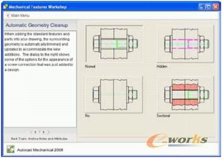 简单实用的用户指南帮助设计者快速了解AutoCAD Mechanical中最常用的特征。这个指南参考了深受用户喜欢的AutoCAD软件中的新特征工作区,交互式地向用户展示了如何用AutoCAD Mechanical来提高设计效率。