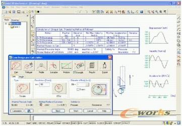 凸轮生成器能够快速完成凸轮的设计和分析,让用户可以有更多的时间去研究凸轮功能的关键数据。根据用户输入的工况条件,可以分别生成线性凸轮,圆形凸轮和圆柱凸轮。可以计算并显示出凸轮的加速度,冲击以及凸轮曲线轨迹。此外,凸轮生成器还可以耦合从动件与凸轮,以及通过凸轮轨迹曲线生成数控加工数据(CNC)。