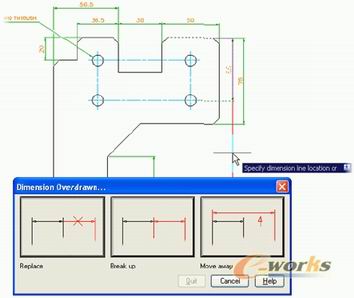 用户改变标注值的大小,相关几何图形就能够自动更新到新的尺寸和形状。对于那些复杂的设计,可利用多选窗口来确定需要通过改变标注值来更改的几何图形。