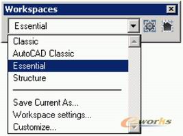快速自定义工具栏和设置项菜单创建工作空间工具栏,它提供一个下拉菜单给设计者存储和选择不同的用户界面。预制的几种工作空间,包括初级工作空间,可以让用户更快学会使用AutoCAD Mechcnical。