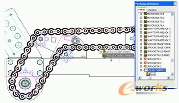 皮带和链传动生成器是通过工程运算生成满足用户需求的高性能的皮带链传动装置。用户输入相关数据,它就能算出皮带和链条的最佳长度,并将生成具体结构加入到设计中。只需从标准库中选择皮带和链条就可以开始操作。