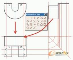 AutoCAD Mechanical中内容丰富的构造线工具包大大减化了创建几何图形和对齐工程图的操作。因为构造线能够自动在所属的图层组中勾勒出来,并且颜色各异,很好地与设计图形本身区分开来。在绘图输出时构造线不会输出。