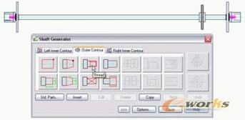 轴生成器有一个包含了大量常用特征和零件的库,可以帮助用户快速生产轴的工程图,包括实心轴或空心轴。可以快速创建轴上常用的特征,包括中心孔,倒角,圆锥,凹槽,轮廓,螺纹,退刀槽和扳手位置,还有轴上常用的标准件,例如轴承,齿轮,挡圈和密封圈。轴生成器还可以自动生成轴的侧视图,并可以利用内置的分析工具对生成的轴的性能进行验证。