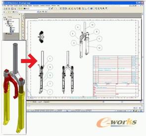 可以基于一个主模型生成多张工程图,不仅省时而且能够减少设计误差。现在支持将零件,装配直接插入工程图中。生成的每张图在不使用层的情况下可以直接应用可视性,缩放,上色和视图覆盖功能。无缝集成的零件表能够准确记录加入每个图纸中零件的数目。