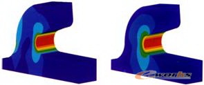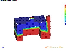 浇注过程模拟完成后,可通过ANSYS隐式算法分析铸件的凝固过程。ANSYS的相变分析及热变形、热应力分析功能,可以模拟预测铸造过程中的变形及残余应力,考察不同的落沙条件,降低铸件内的残余应力。