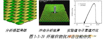 另外,为了增强风扇机匣的包容效果,通常会在机匣上缠绕高强度纤维织物(如凯芙拉碳纤维等),这些质量轻、强度高、韧性好的纤维材料能有效地包容穿透了金属机匣的叶片和机匣碎片。这些纤维织物在LS-DYNA里也可进行有效的模拟,前一页右下图即为ARA公司用LS-DYNA分析的一种用于发动机包容的纤维织物结构,该研究项目由FAA资助。