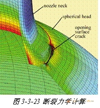 裂纹的扩展特性由断裂力学计算来完成。在线弹性条件下,用裂纹尖端的应力强度因子K与材料本身临界应力强度因子Kc、以及裂纹扩展门槛值等之间的关系,来判断裂纹是否扩展以及扩展的速度;在裂纹尖端出现大范围塑性屈服的情况下,用弹塑性断裂力学参数J积分与材料本身临界J积分数据等之间的关系来判断裂纹扩展特性。