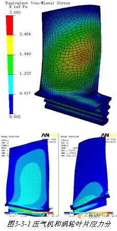 压气机和涡轮的叶片、轮盘等重要构件在考虑温度、气动力、高速旋转离心力等载荷作用下的强度、振动以及高低周疲劳计算;