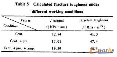 计算了故障叶片在离心负荷、离心+气动负荷以及离心+气动+温度负荷三种载荷工况下的J积分,结果见表5。可以看出,在此条件下叶片的断裂韧性明显低于材料的断裂韧性值。