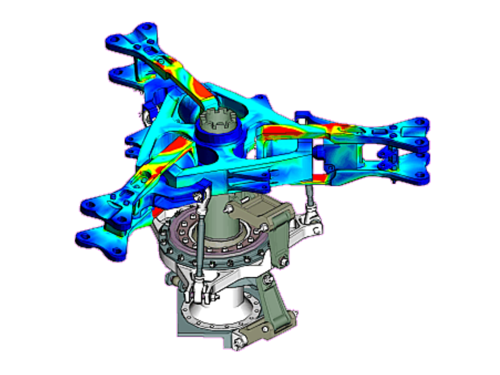 直升飞机的螺旋桨转动部件模型共358个零件,769个装配联结关系。采用AWB的自动探测接触功能,可以轻松地实现零件之间的接触以及装配联结关系。