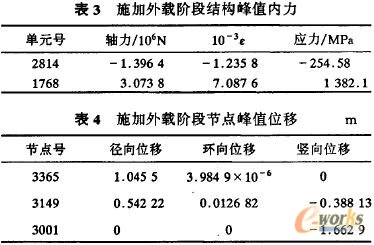 ⑤在第二加载阶段,最大的拉索应力为1382.1 MPa < 1 395 MPa;最大的压杆应力为-254.58 MPa,稳定分析允许该压杆的应力约为260 MPa,不发生失稳;