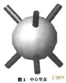 节点采用Q235或Q345钢,中心节点为螺栓球节点,即在该球体的表面设有数个径向的压杆连接螺孔。中心节点的丝扣方向与上下层节点和角节点的丝扣方向相反,以便与压杆相连并施加预应力,如图2所示。