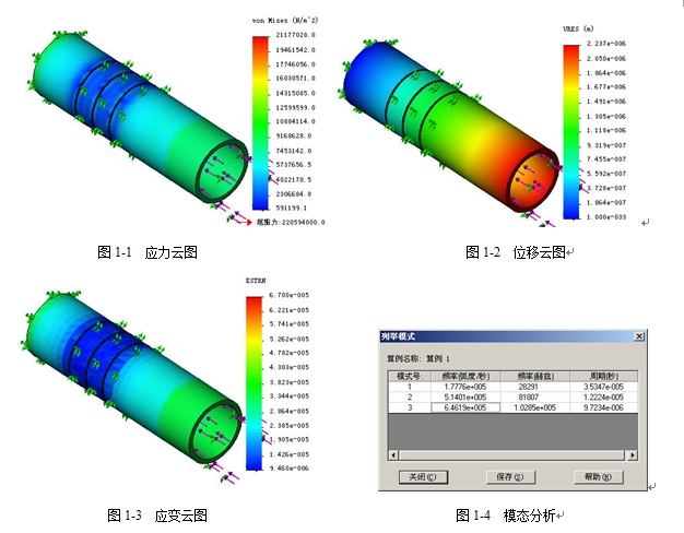 图1-4的“列举模式”对话框中列出了“推杆活塞”零件在工作载荷下,其前三阶的模态的频率远远大于输入转速的频率,因此在启动及工作过程中,该零件不会发生共振情况。模态验证符合设计要求。