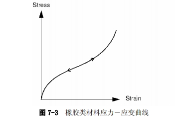 橡胶可以近似认为具有非线性的、可逆的(弹性)响应的材料(见图7-3)。