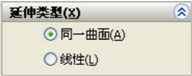 同一曲面:沿曲面的几何体延伸曲面。 线性:沿边线相切于原有曲面来延伸曲面。