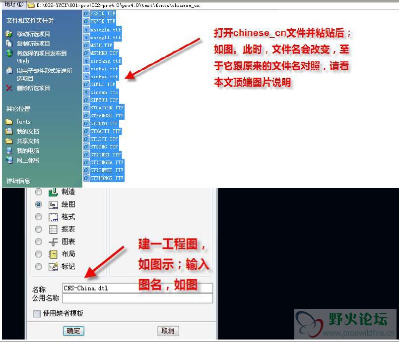 第1列:从xp下复制到proe的 text目录下后自动更改的字体名称