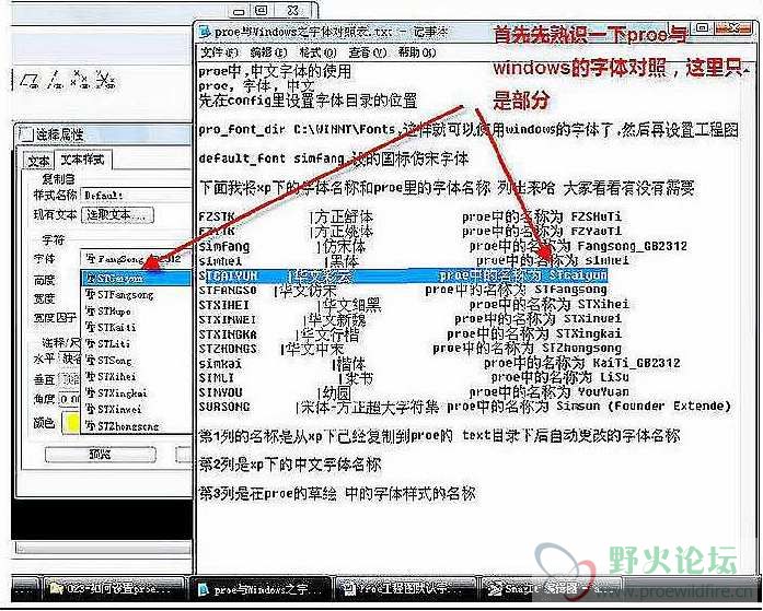 下面我将xp下的字体名称和proe里的字体名称 列出来给大家参照:如下: