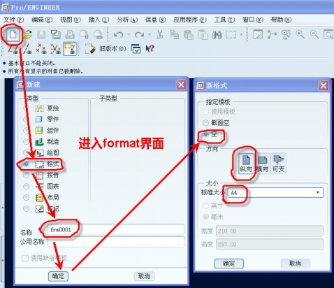 这样就完成了一个简单的format文件,我们把它命名为:GB_A4.FRM 保存好放在自己的formats文件夹中,并在config.pro文件中设定好pro_format_dir,比如E:\proe\formats,这样就可以使用它了。