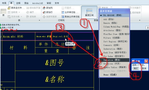 操作步骤:重复区域→累加→选取重复区域→确定→添加→按名称→选取欲累加列的“总计”→输入参数→输入“总重量”→放置参数→提取参数。