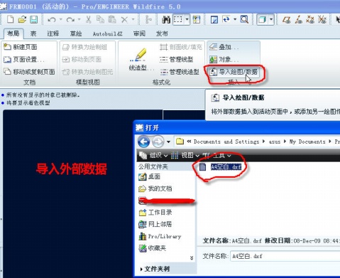 从CAD导入的图框中的表格不能输入文本,只能作为几何图元。要制作如标题栏之类可输入文本的表格只有在ProE中创建表格(Table Create)。