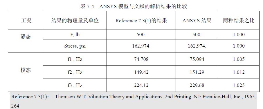 最后将计算结果与参考文献所给出的解析结果进行比较,见表7-4。