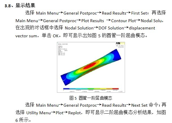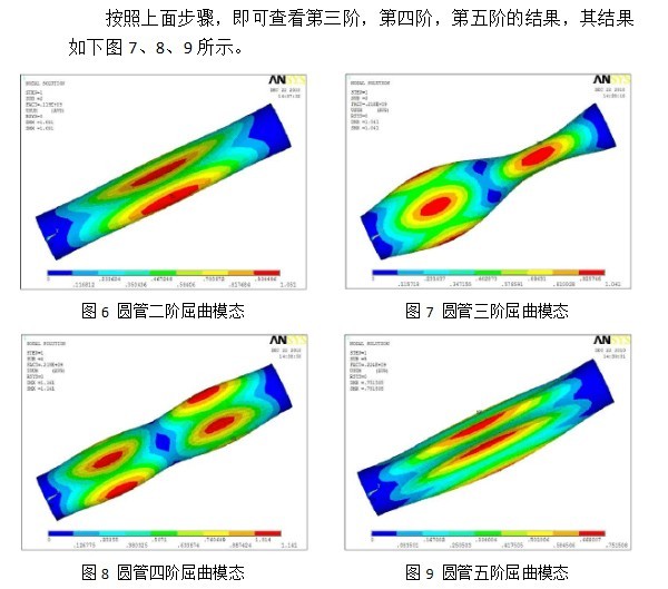 由以上可得知该薄壁圆管的各阶屈曲模态临界值,可见圆管在一阶,二阶屈曲模态,其失稳的受力值最小,应该避免这种受力状况的出现。