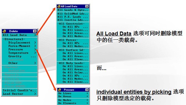 当删除实体模型时, ANSYS 将自动删除其上所有的载荷