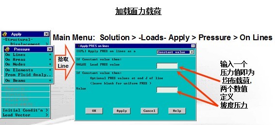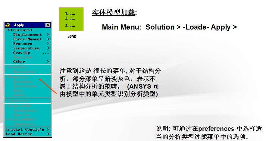 无论采取何种加载方式,ANSYS求解前都将载荷转化到有限元模型.因此, 加载到实体的载荷将自动转化到 其所属的节点或单元上。