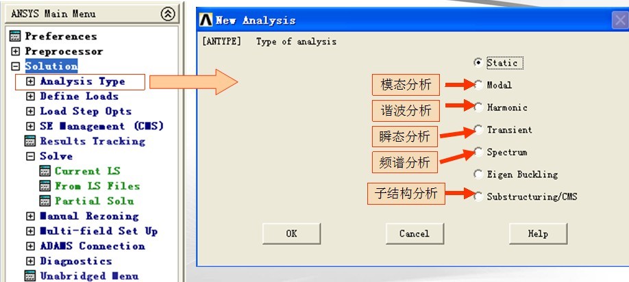 GUI:MainMenu>Solution>Analysis Type>Solution Ctrl
