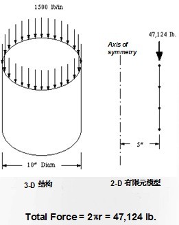 在右图中,轴对称模型中的载荷是3-D结构均布面力载荷的总量。