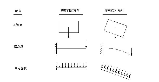 当结构经历大变形时应该考虑到载荷将发生了什么变化。在许多情况中,无论结构如