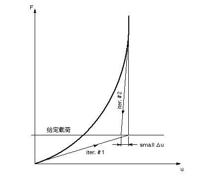 的末端解达到平衡收敛(在某个容限范围内)。图1─3(b)描述了在单自由度非线性分析中