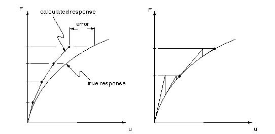 (a) 纯粹增量式解(b)全牛顿-拉普森迭代求解(2 个载荷增量)