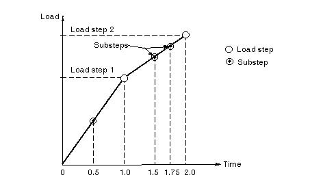 * 在每一个载荷是步内,为了逐步加载可以控制程序来执行多次求解(子步或时间步)。