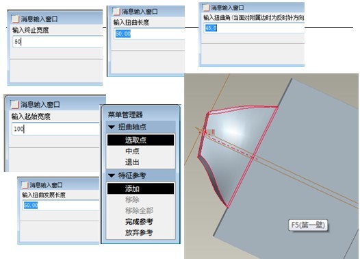 扭转壁是将一块平整壁沿中心线扭转一定角度以后形成的壁特征。