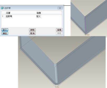 边折弯是将钣金件上非相切的锐边转换为折弯,利用边折弯操作可以快速对边进行圆角处理。