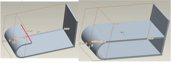 当添加新的特征时,平整形态特征将会自动被暂时隐含,钣金件仍显示为三维状态,当新特征创建完毕后,系统又自动恢复平整形态特征。这样系统会永远将平整形态特征放在模型树的最后。