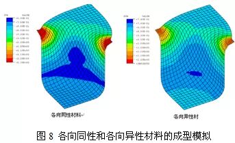 下图为掉底模拟以及各向同性和各向异性材料的成型模拟。