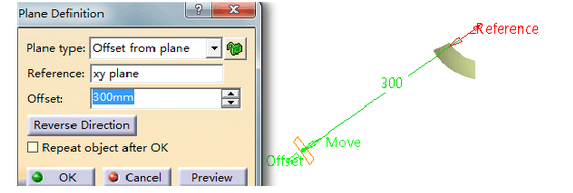 ,弹出如下对话框,新建相对xy平面偏移300mm的plane.1。
