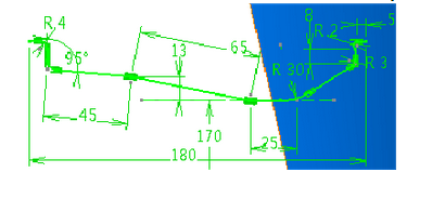 (3)选择yx平面,进入草图绘制工作台,绘制如下轮廓,最低点距y轴为170mm。