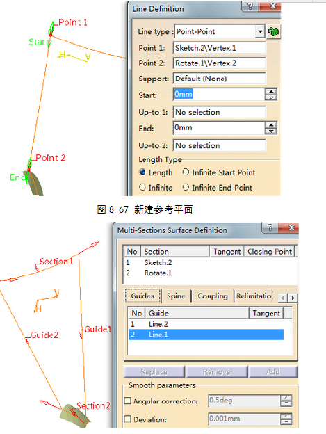 单击“Multi-Sections Surface”(放样)命令图标,弹出图8-68所示对话框,选择Sketch.2