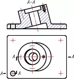 5. 物体上较小的结构,如在一个图形中已表达清楚时,其它图形可简化或省略。图中主视图上省略了两个小圆,俯视图也简化了相贯线。