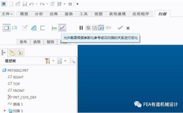 5.然后点击扫描命令,创建扫描特征,并勾选允许界面根据参数化参考或沿扫描关系进行变化